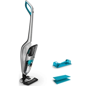 PowerPro Aqua 3 in 1 este un aspirator versatil si extrem de eficient. Este echipat cu o baterie litiu-ion puternica, ce permite aspirarea fara intrerupere timp de pana la 60 de minute. PowerPro Aqua face curatarea zilnica mult mai usoara. Aspiratorul vertical ergonomic, fara sac este potrivit pentru toate tipurile de podele. In plus, aparatul include un sistem de stergere umeda care indeparteaza petele de pe podelele dure, precum si un aspirator de mana pentru curatarea mobilierului si a locurilor greu accesibile.