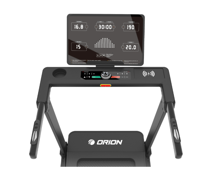 - Calculatorul LED cu lumină albă afișează parametrii esențiali: viteză, timp, distanță, calorii, puls și înclinare. Orion Perform M500 dispune de 24 programe presetate, 3 programe utilizator și un program Body Fat pentru monitorizarea compoziției corporale. Tastele touch și comenzile rapide pentru viteză și înclinare, amplasate și pe mânere, asigură un control simplu și rapid.