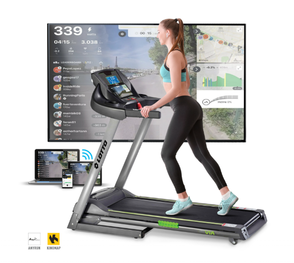 Beneficiază de conectivitatea Bluetooth pentru a-ți sincroniza banda de alergare cu smartphone-ul sau tableta, folosind aplicațiile Anyrun/Kinomap pentru a controla banda și pentru a-ți îmbunătăți experiența de antrenament.