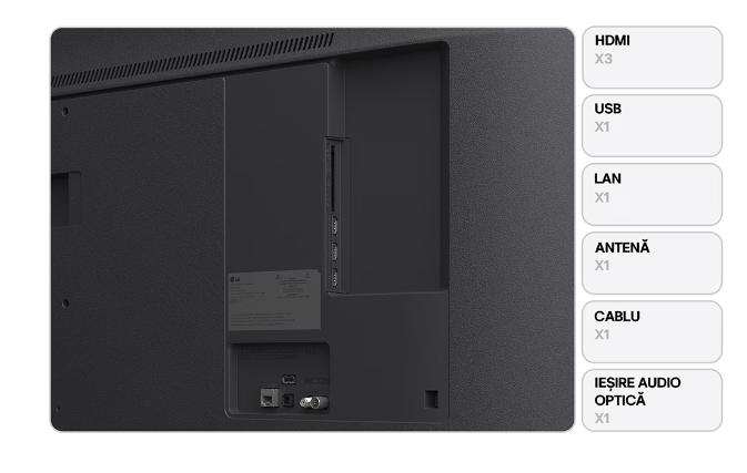 | Alte detalii | EPG; Teletext; Auto Power Off; LG ThinQ cu suport pentru standardul Matter |