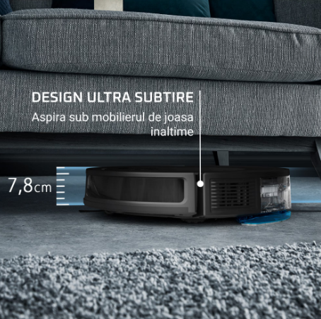 Robot ultra subtire Acesta are o inaltime de numai 7.8 cm - ideal pentru a patrunde cu usurinta sub piesele de mobilier de joase. |