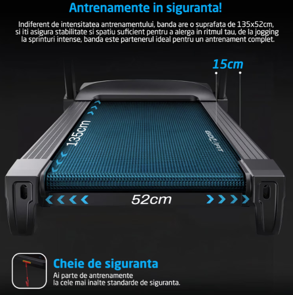 Suprafata de alergare: 135 x 52cm